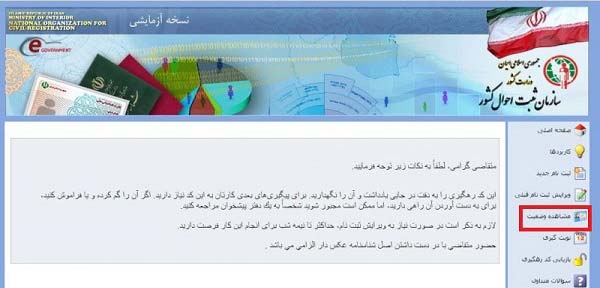 همانطور که در تصویر زیر مشاهده می کنید، سامانه ثبت احوال را مشاهده می نمایید: