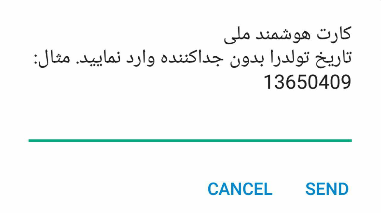 سپس شماره ملی خود را وارد می نمایید و بر روی send میزنید.
